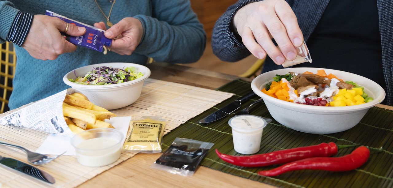 Heute produziert akari taste rund 15 unterschiedliche Saucen exklusiv für LO! – in variierenden Gebindegrössen, je nach Einsatzgebiet. Die Dip-Saucen werden in Einzelportionen von 12 bis 20 Gramm je Beutel geliefert. Der Grossteil in 5-Kilo-Bags, die in den Betrieben vor Ort in GN-Schalen oder Portionierflaschen abgefüllt werden. Diese Anpassungsfähigkeit ist entscheidend für den reibungslosen Ablauf im Tagesgeschäft und minimiert Food- und Verpackungs-Waste.