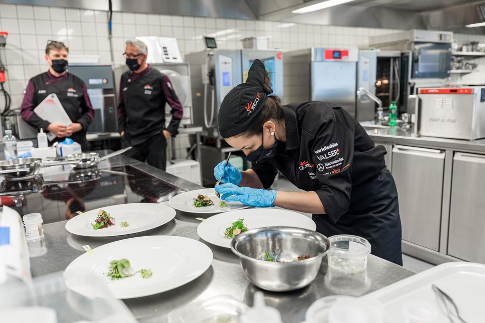 Dalila Zambelli vom Waffenplatz Isone konnte ihr Glück kaum fassen, als Sven Epiney ihren Namen als Siegerin von «gusto21» verkündete. Nur wenige Stunden zuvor wurde das letzte Gericht der diesjährigen Schweizer Meisterschaft für Kochlernende angerichtet und von der Jury bewertet. Neun junge Kochtalente im 2. oder 3. Lehrjahr waren am 3. und 4. März in Baden zum finalen Wettkochen angetreten. Über Monate hinweg hatten sie bis dahin an ihren Gerichten getüftelt: Jeweils eine Vorspeise und eine Hauptspeise, die unter anderem Fisch beziehungsweise Mastgeflügel enthalten mussten, zubereitet mit verschiedenen Kochtechniken. Im Dezember qualifizierten sie sich mit ihren Einsendungen für das Finale. Nun also mussten sie ihr Können live in der Wettkampfküche unter Beweis stellen und ihre Gerichte innerhalb von insgesamt drei Stunden auf die Teller bringen.