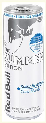 Lange Tage, heisse Nächte und jede Menge Festivals. Mit der neuen Red Bull Summer Edition hält der Sommer, was er verspricht. Die Edition belebt deinen Sommer, denn sie kombiniert die bekannte Funktionalität des Red Bull Energy Drink mit dem Geschmack von Kokos-Heidelbeere.