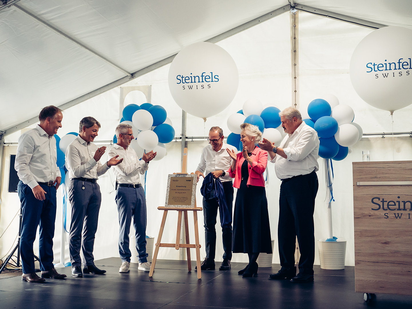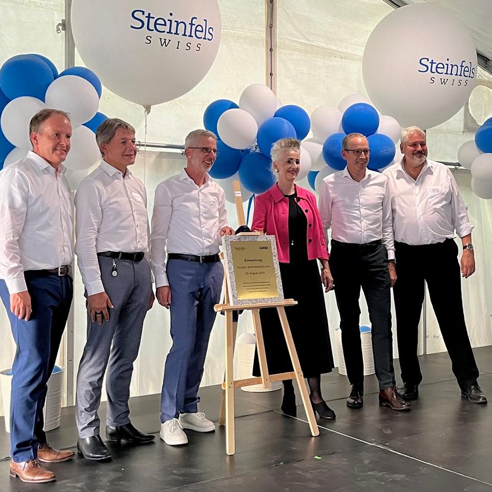 Am 29. August erfolgte der feierliche Auftakt zur Einweihung des Neubaus Produktion der Steinfels Swiss. Zur offiziellen Einweihung versammelten sich zahlreiche Gäste, darunter Vertreter:innen aus Politik, Wirtschaft sowie Kund:innen und Lieferant:innen aus dem In- und Ausland. In ihrem Grusswort betonten Carmen Walker Späh (Regierungsrätin Kanton Zürich, Volkswirtschaftsdepartement) und Mike Künzle (Stadtpräsident Winterthur) die Bedeutung der neuen Produktionsstätte für den Kanton Zürich und die Stadt Winterthur.