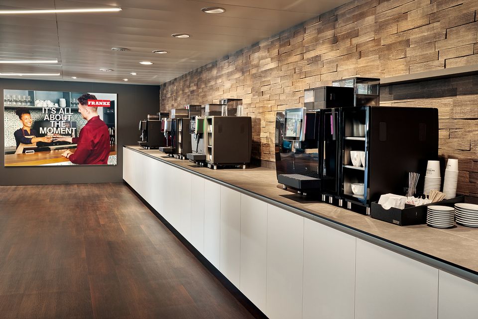 Die grosszügige Raumgestaltung bietet viel Platz um jede Maschine und ihre Funktionen zu entdecken. Neben dem kompletten Maschinen-Portfolio sind hier auch die bekannten Franke Coffee Technologies wie iQFlow™, FoamMaster™, CleanMaster, IndividualMilk Technologie oder die Franke Digital Services zu erleben. Besucher können die leistungsstarken Funktionen mit nur einem Knopfdruck selbst ausprobieren und erleben so hautnah, wie sie den Erfolg ihres Kaffeegeschäfts mit individuellen Lösungen weiter ausbauen können.