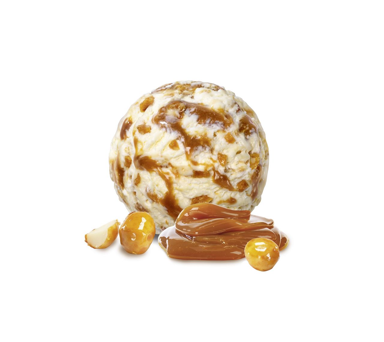 Diese nussig-feinen Macadamia-Krokantstückchen sind der Wahnsinn! Dazu die perfekte Verbindung zwischen Vanille-Rahmglace und salziger Caramelsauce.