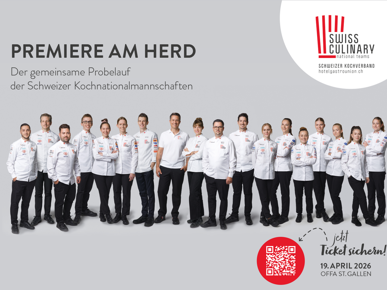 An der diesjährigen OFFA erwartet Besucherinnen und Besucher ein besonderes Erlebnis: GastroElite lädt am Sonntag, 19. April 2026, von 11:30 bis 15:30 Uhr zu einem exklusiven Event mit den Schweizer Kochnationalteams ein.
