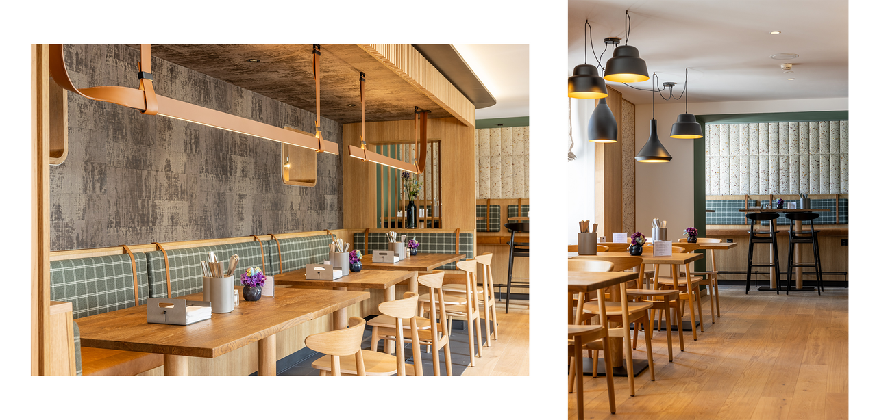Anstelle reiner Funktionalität standen Wohlbefinden und Identität im Fokus. Denn die Räume müssen mehr können als nur satt machen. Schon beim Betreten sollen die Leute das Gefühl haben, willkommen zu sein. Unabhängig davon, ob sie für eine kurze Kaffeepause, ein ausgedehntes Mittagessen oder zum Ausklang des Abends kommen.