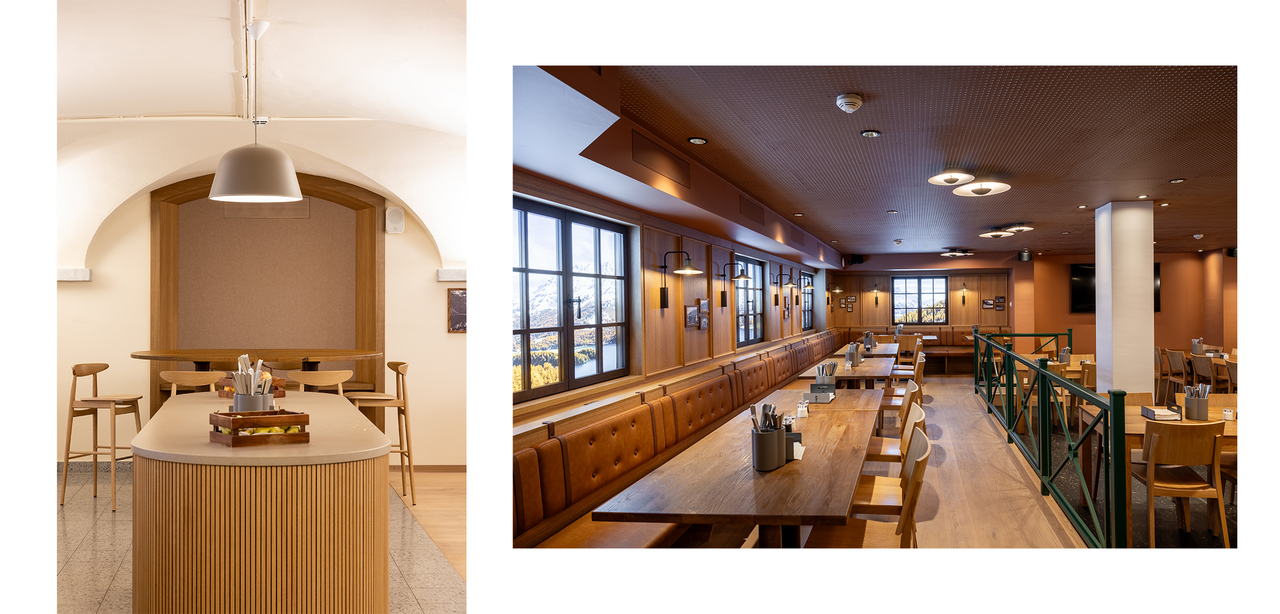 Für das Kulm Hotel in St. Moritz und das Grand Hotel Kronenhof in Pontresina hat die Krucker Partner AG diesen Anspruch bei der Neugestaltung zweier Personalrestaurants und -bereiche in Raum und Atmosphäre übersetzt.