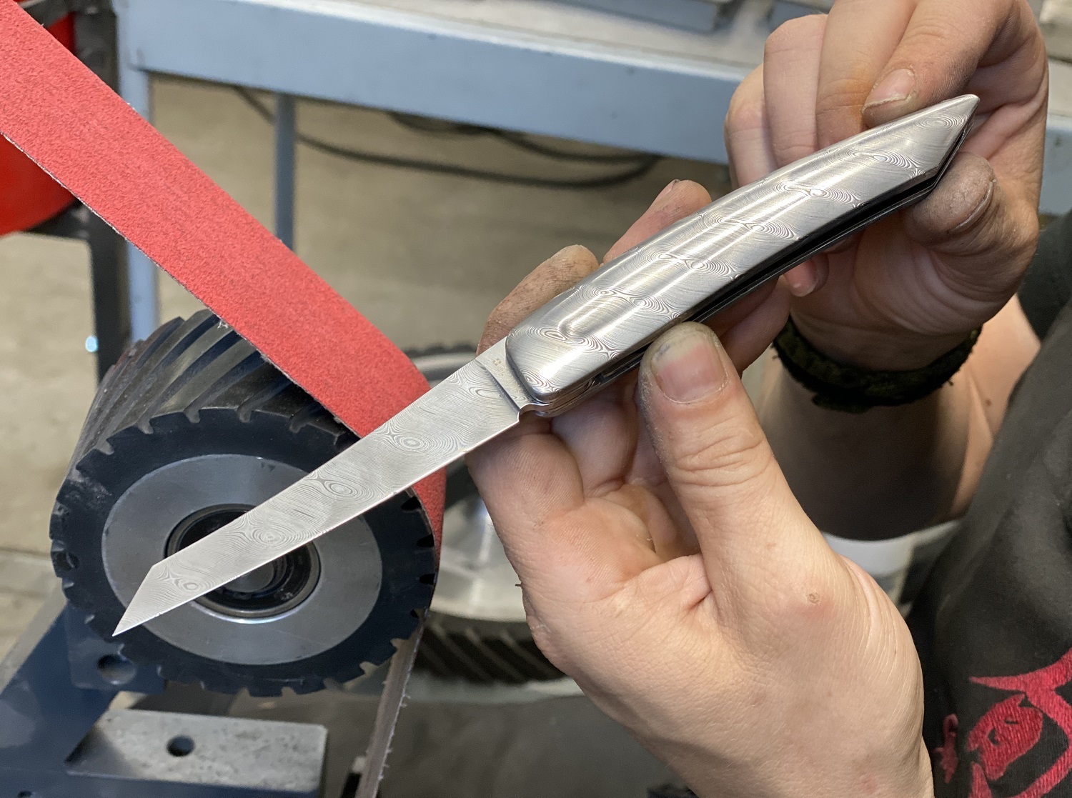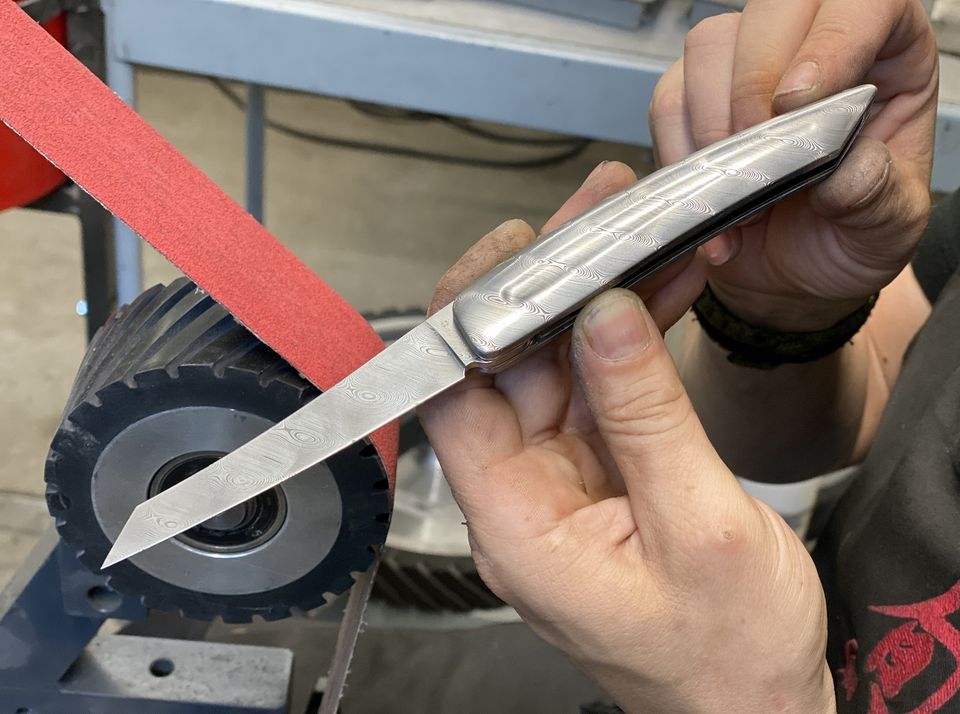Inhaber Michael Bach und Messerschmied Timo Müller bringen die Messerhandwerkskunst auf ein neues Level. Durch die stark steigende Nachfrage nach Damastmessern während des Lockdowns, nutzten der Ingenieur und der Messerschmied die Zeit, um der absoluten Perfektion noch einen Schritt näher zu kommen und entwickelten zusammen ein Masterpiece: Taschenmesser aus Volldamast.