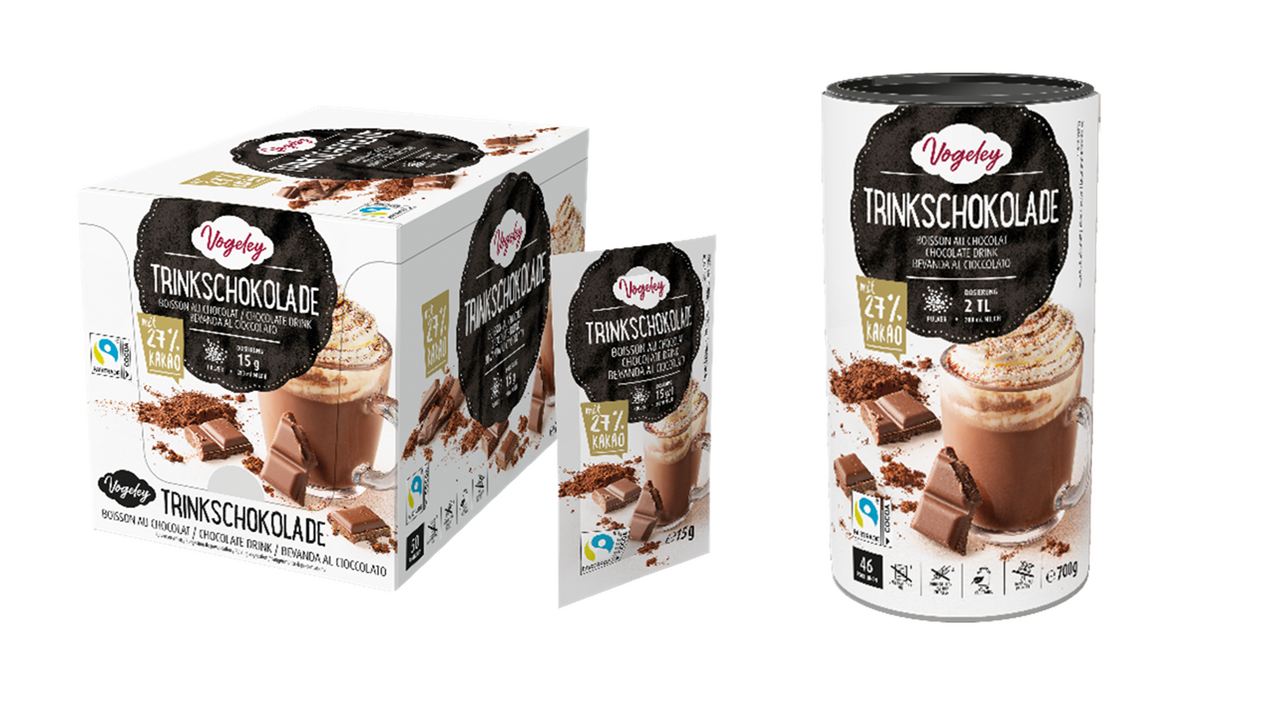 Besonders überzeugt der hohe Kakaoanteil von 27 Prozent. Damit hebt sich die Trinkschokolade von Vogeley klar von gängigen Standards im Markt ab und bietet einen spürbar volleren, schokoladigen Geschmack. Frei von Palmfett und in zwei Gebindegrössen erhältlich, passt sie sich den Anforderungen verschiedenster Betriebe an: Portionsbeutel im Tray für den schnellen Zugriff und eine ansprechende Präsentation oder die ergiebige Dose für den flexiblen Einsatz.