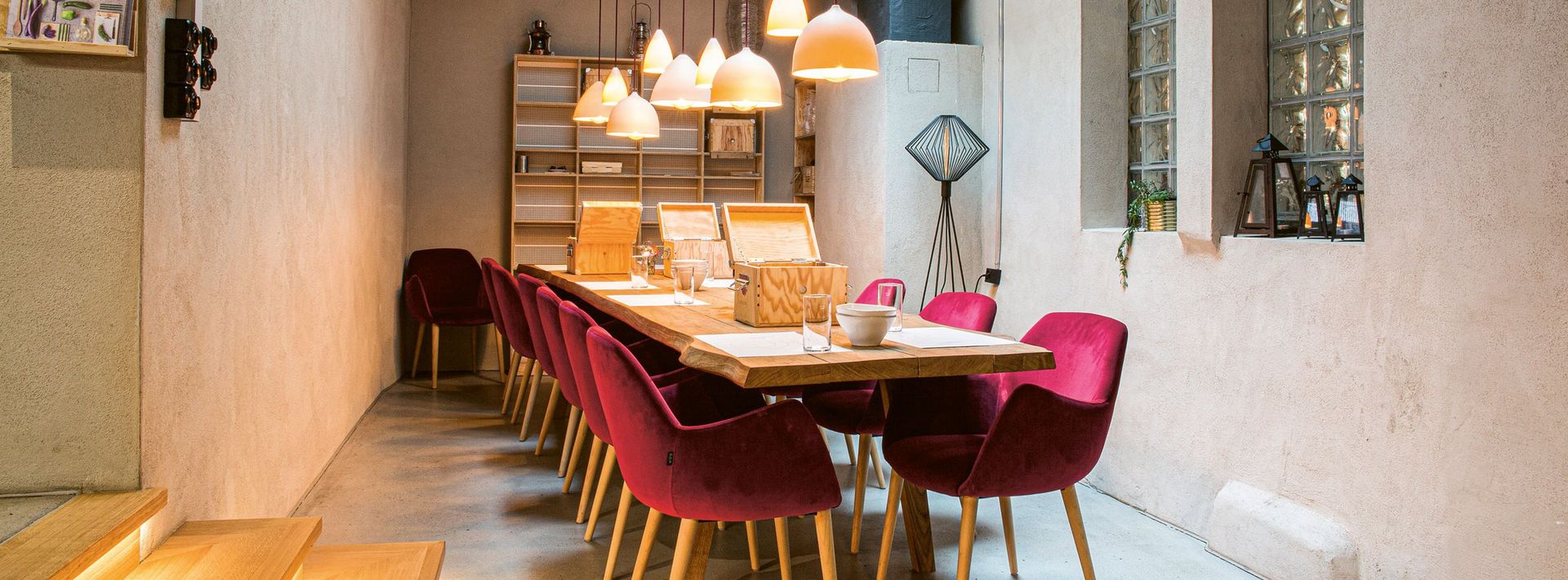 Das Holzkästchen steht schon auf unserem Tisch, daneben stapeln sich die Teller. «Den Tisch decken die Gäste selber», erklärt Davide Alfarè. Der Betriebsleiter öffnet den Deckel. «Hier in der Werkzeugkiste ist alles drin, was es für ein gemütliches Essen braucht.» Vom Besteck über die Senfsalatsauce, Brot und den Blutorangensirup bis hin zum Zucker für den Kaffee ist in der Box alles übersichtlich drapiert. Alfarè stellt eine Schüssel mit Salat hin und wünscht guten Appetit. «Den Hauptgang könnt ihr später einfach bei Mae abholen – so oft, wie ihr möchtet.» Er schenkt uns ein breites Lächeln und geht singend zum nächsten Tisch, wo Gäste ihr Holzkästchen neugierig unter die Lupe nehmen.